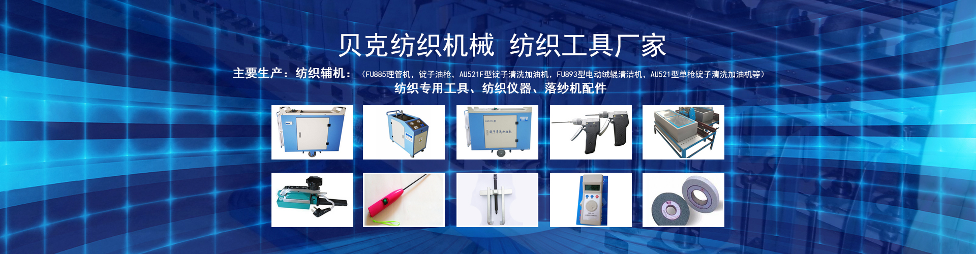 安徽貝克紡織機械設備有限公司座落于皖東天長市東郊S312省道109km仁和段,毗鄰江蘇南京、揚州、水陸交通十分便利,環境優美。 公司是主要產品有:紡織專用工具(前紡、后紡保全、保養、平車、全套專用工具和通用工具),皮輥房系列(皮輥磨床、壓圓機、套皮輥機、皮輥切割機有機械式和液壓式兩種供選擇),梳棉輔助機械(刺輥包磨機、清刷蓋板機、金屬鋸條倒料機蓋板踵趾面銑削機、包針布慢速傳動裝置 ……